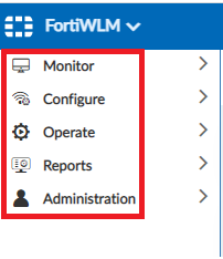 FortiWLM MEA supports specific options of the Monitor, Operate, and Administration tabs for FortiGate controllers. You can add and manage FortiGate controllers (with the available options).