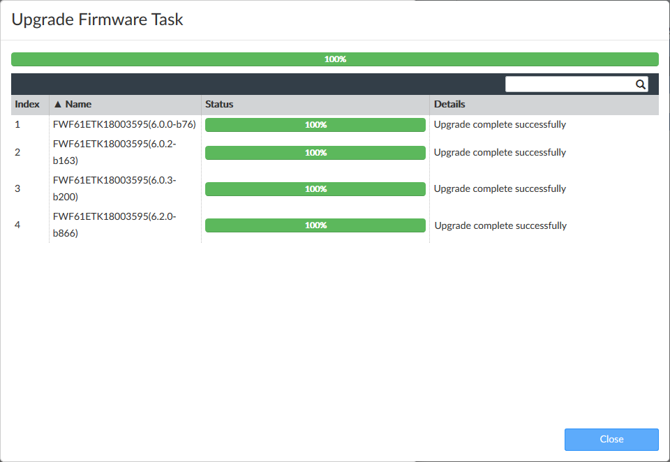 - When the upgrade completes, click Close.