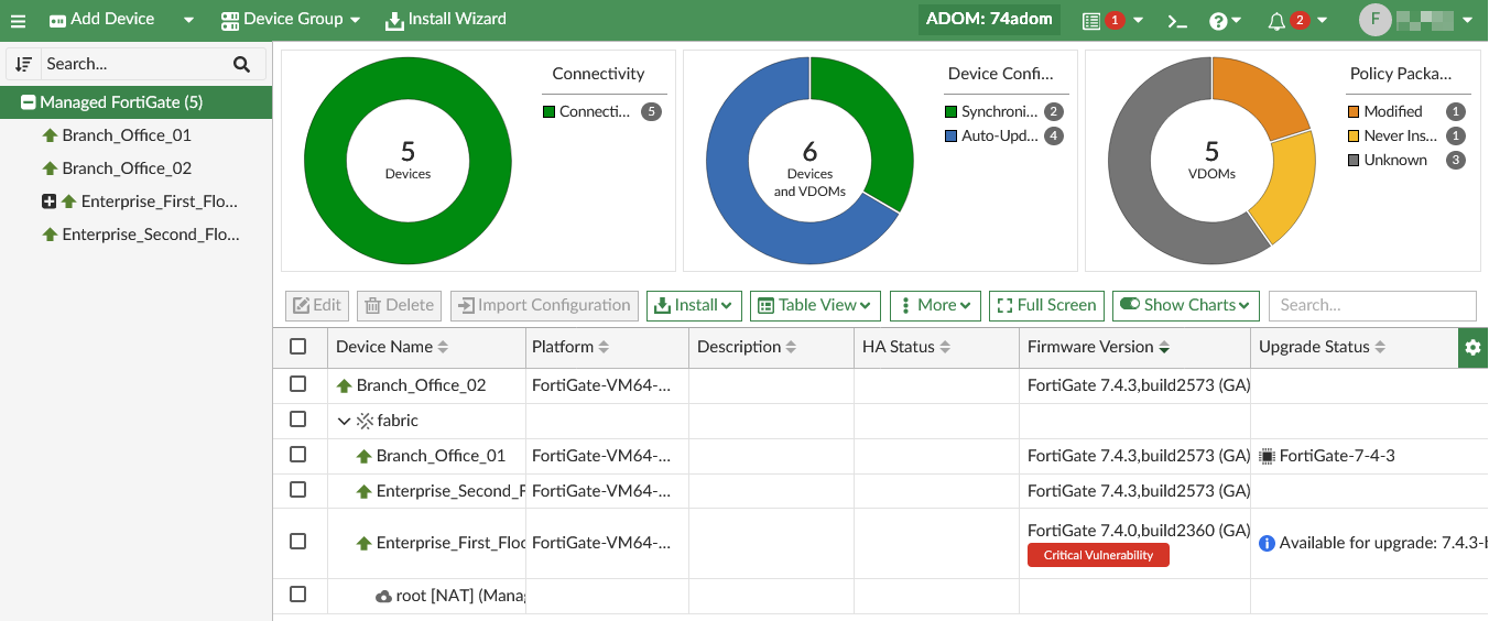 In the tree menu, select the device group name, for example, Managed FortiGate.
