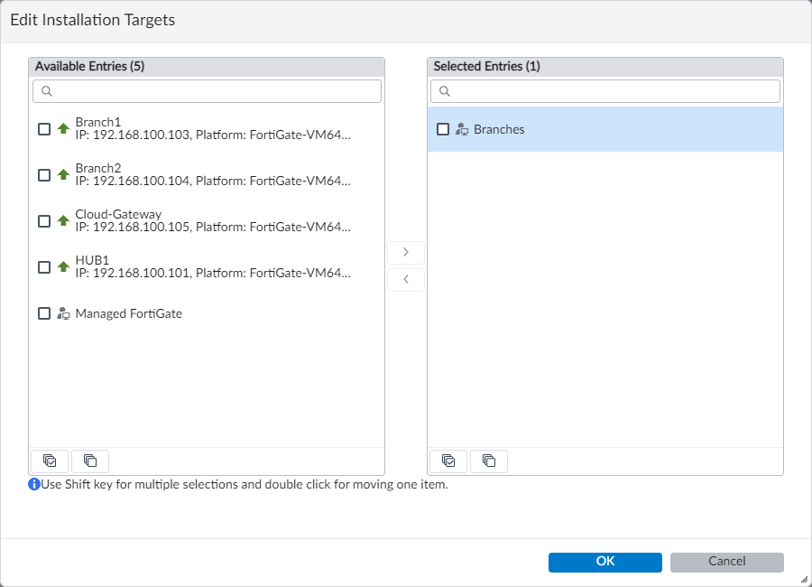 - On the Policy & Objects pane, expand the Branches policy package, and select Installation Targets.