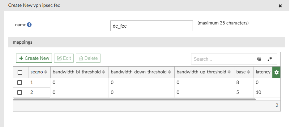 Under mappings, click Create New. The Create New vpn ipsec fec mappings pane is displayed.
