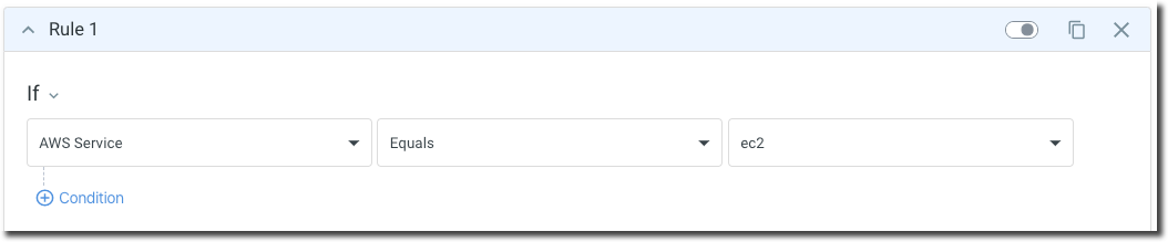 The example below checks to see if an instance is an EC2 instance. You can add as many condition requirements or actions to your ruleset rule as necessary; decoupling them is encouraged for maintainability.