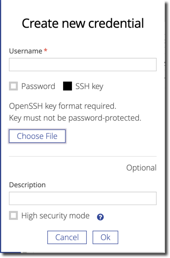 An SSH private key which you can later upload to the NCM. The network device must already have the public key from the SSH key pair installed.