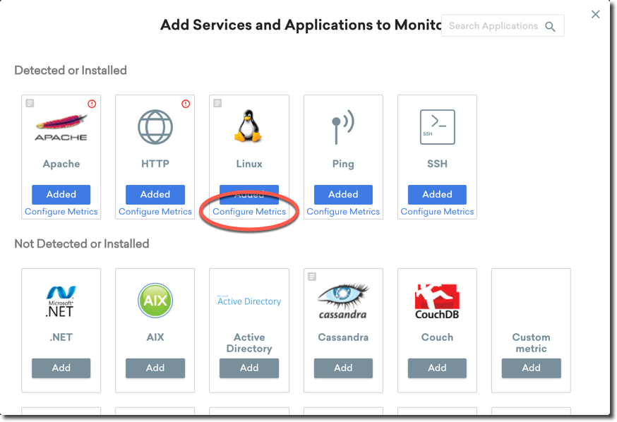 At this point, it is important to point out that some Linux agent resources require additional configuration before they are available to be monitored. They may appear greyed out in the metric drawer.