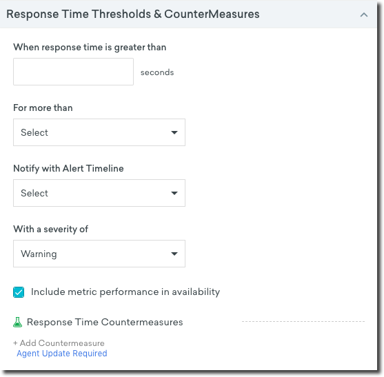On the Response Time Thresholds & CounterMeasures modal, configure the following fields: