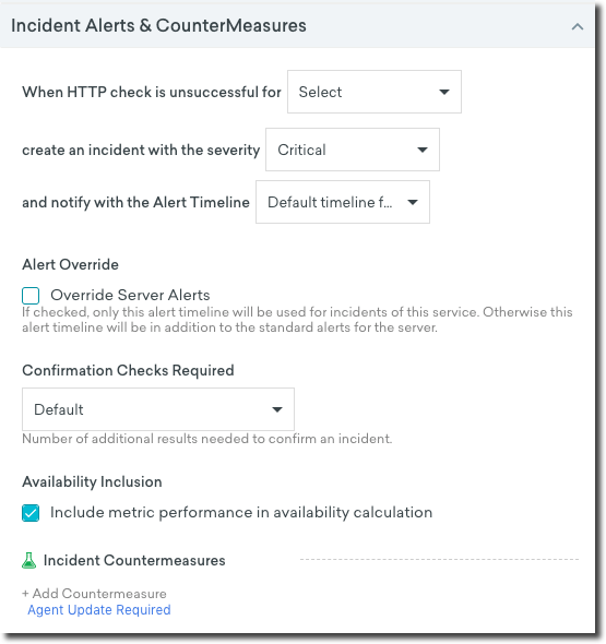 Incident alerts and response time thresholds can be configured while adding or editing a network-based metric. This allows you to control when to get alerted, the Alert Timeline to use, and the severity to be assigned when an incident occurs.