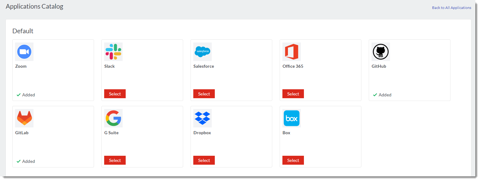 When adding applications to FortiMonitor, you have the option to create custom applications, or use default applications. Default applications are pre-configured checks for common applications such as Salesforce or Zoom. With default applications, instances and checks are configured out-of-the box to satisfy the monitoring requirements of an application.