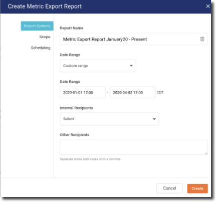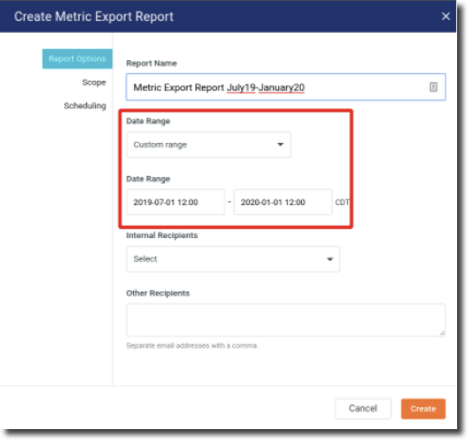 Exporting Metric Reports for long duration time periods