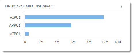 In this example, the available disk space for selected Linux servers is represented by the blue bars in the graph.