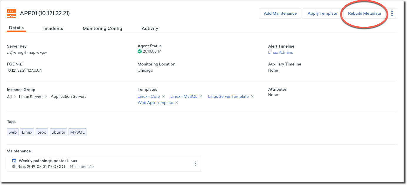 If you are a Linux user, you can also run the shell version of the Agent to rebuild the metadata with the command below. Keep in mind that there will be no output and the terminal may appear to freeze for up to a minute depending on how many plugins and the metrics that you are monitoring: