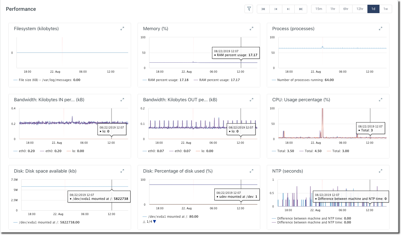 The Instance Details page exposes all of the relevant information about the instance, including the instance performance, monitoring configuration, incidents, maintenance schedules, availability, and more. Performance-based graphs are displayed in the Performance section of the Instance Details page to help you visualize the status of each metric configured for the instance.