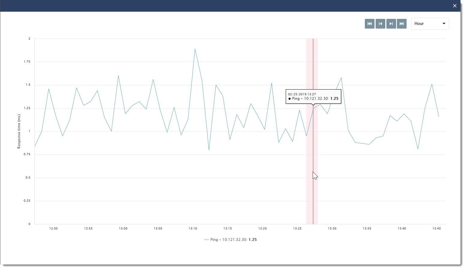 Clicking the expand arrows on the metric will show you a graphical representation of that metric's data and incidents. Any incident will be presented as a red bar in the graph.