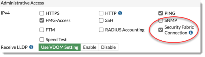 Active Security Fabric (Devices should be present under Fabric Root). See Fortinet Security Fabric Administration Guide.