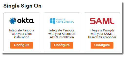 Setting up SSO for your FortiMonitor account allows you to use credentials configured in your organization's internal authentication tool (Active Directory, SAML, Okta). When you use SSO, users can benefit from not specifying separate credentials when logging into FortiMonitor. Administrators can also save time by having a central management location for user accounts and authentication. To set up and use SSO, select Settings > Integrations then follow the steps provided in Single sign-on (SSO).