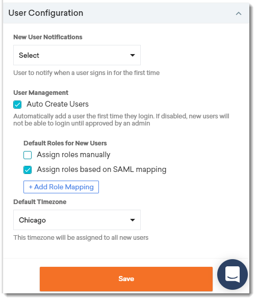 Assign roles based on SAML mapping - Automatically assign roles to new users based on the configured SAML mapping. See SSO-based roles for more information.