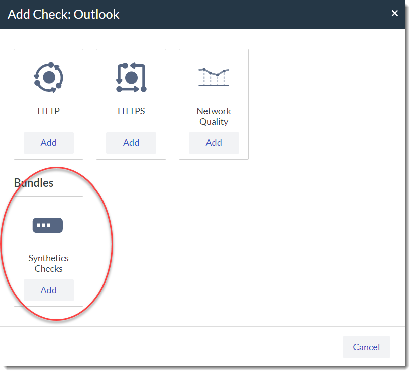 In the Add Check modal, click Synthetic Checks located under the SD-WAN group.