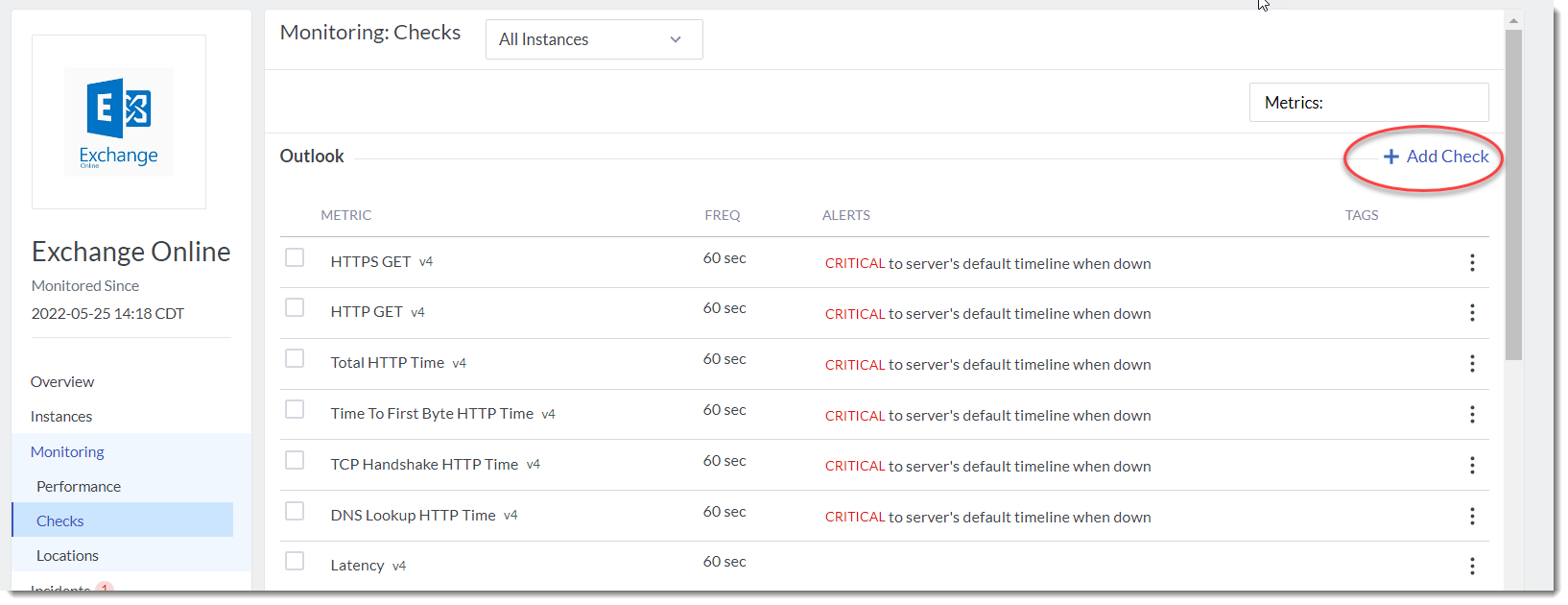 To add SD-WAN synthetic checks to an existing application, perform the following steps: