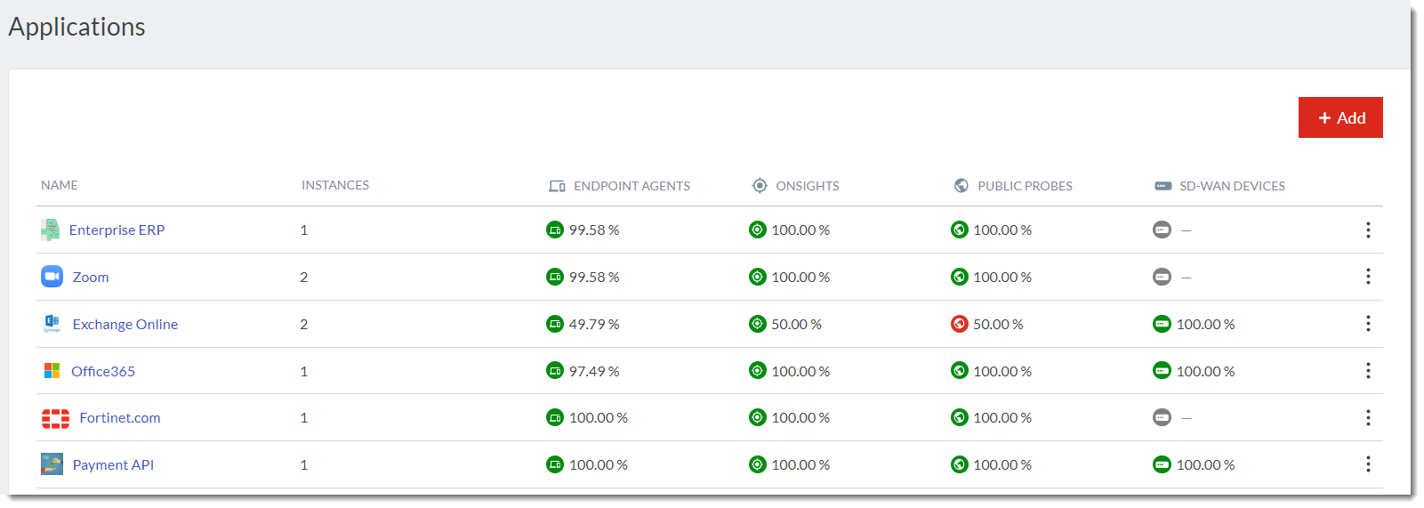 To verify that you have successfully configured SD-WAN application monitoring, go back to the application's page. Under the Status & Availability section, you should be able to see the status of the SD-WAN devices.