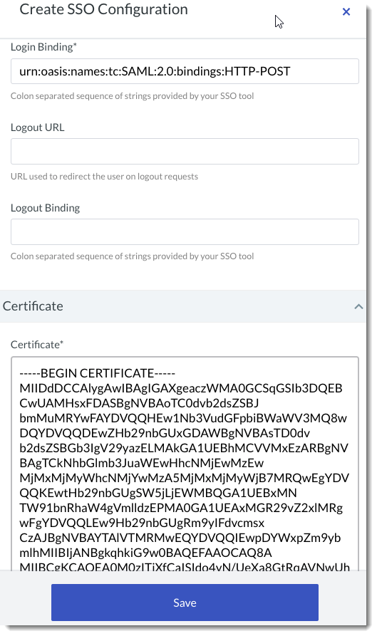 You can now hit Save on the Control Panel Create SSO Configuration screen. You may want to revisit that configuration to force all users to use SSO by enabling Prevent non-SSO Logins, but you should test this configuration first before checking that option.
