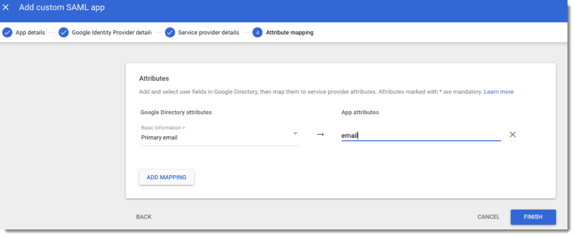 Press continue and on the next screen where you can add an attribute mapping as follows: