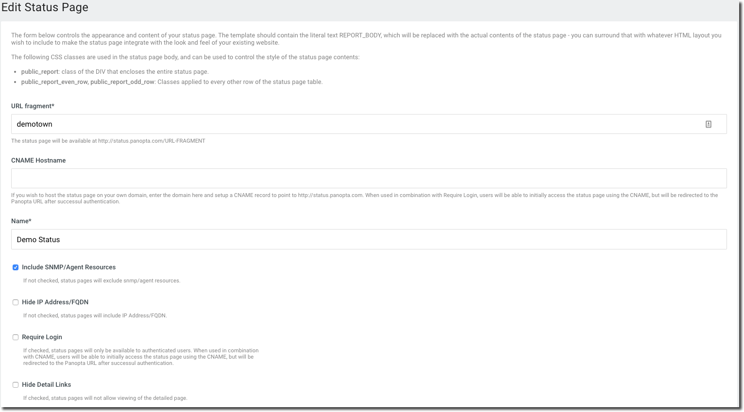 Note: If the Require Login option is enabled and the user is logged in to FortiMonitor, The status page will not prompt for authentication.