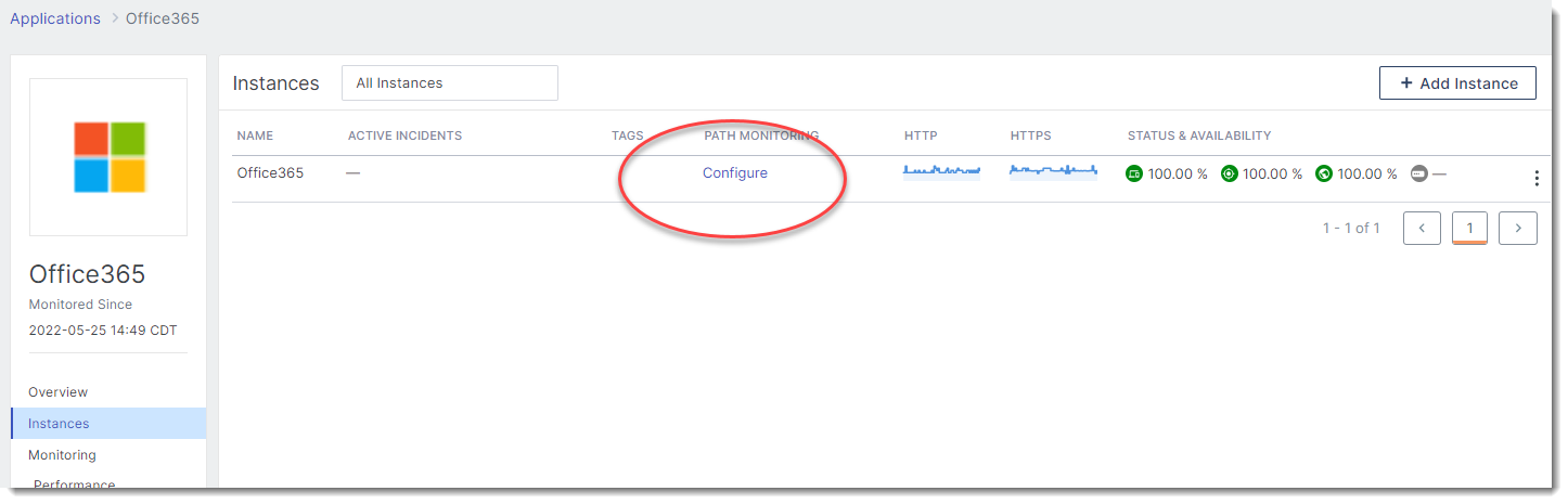 4. Choose the instance that you want to update then click the Path Monitoring link. Configure. The configuration drawer will slide out.