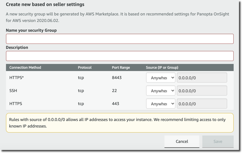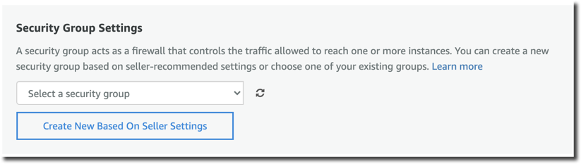 7. Under Security Group Settings, click Create New Based on Seller Settings.