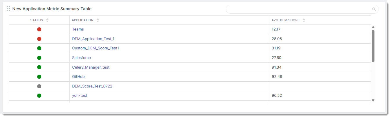 The Application Metric Summary widget is used for showing current and aggregate metric values in a tabular form.