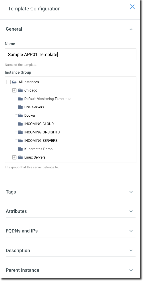 Tags – Enter tags that can help define the instance where the template will be applied. Agent heartbeat tags can also be defined here.