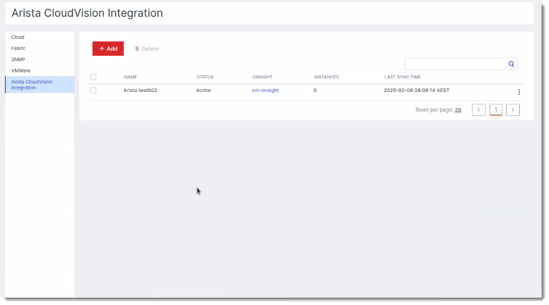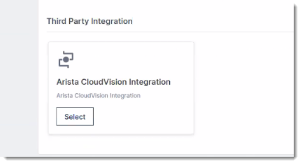 Select the OnSight where the third-party integration is configured. In this case, choose the OnSight with the sidecar configured for Arista CloudVision.