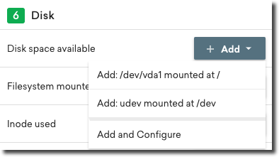 The Disk plugin lets you monitor how much space you have available on your server. This tool can be particularly useful for server management, for example, you can trigger an alert when the disk space falls below a certain threshold. Monitoring your disk space, and preventing disk filling, is one of the greatest ways to prevent outages.