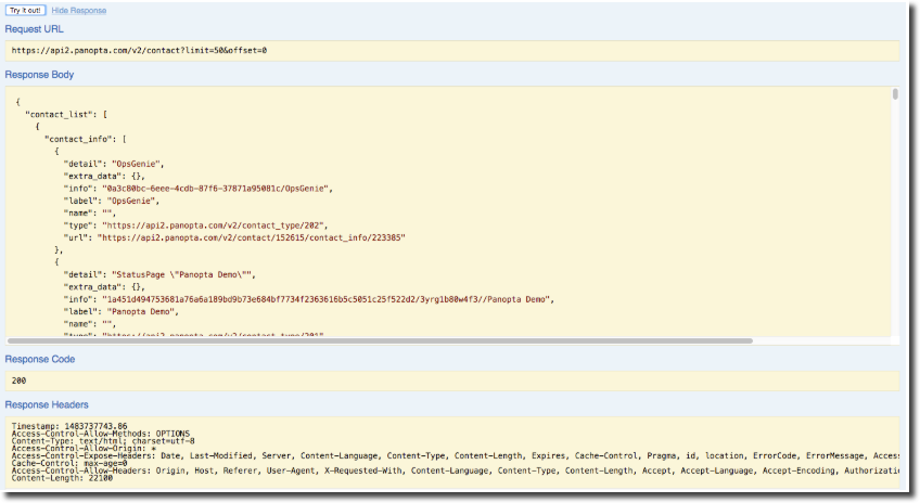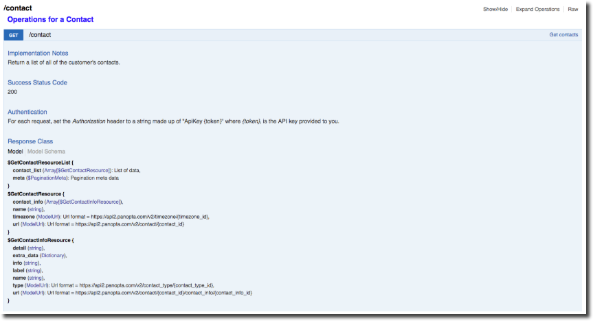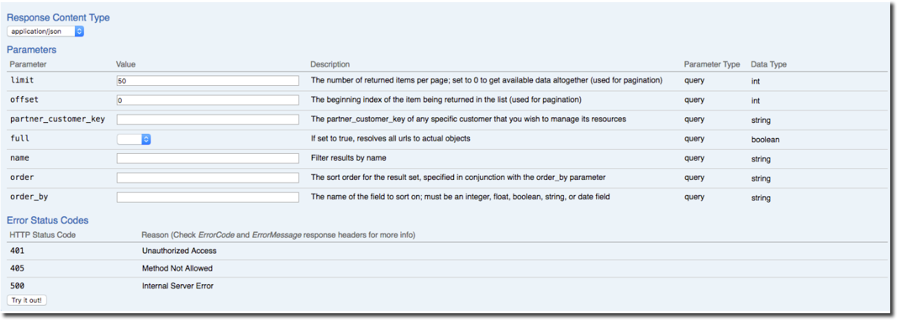 This detailed view will give you all the information you need to understand how the objects are constructed and what variables you will be working with. The detailed view also give you the option to set configure the parameter and content type of your response.