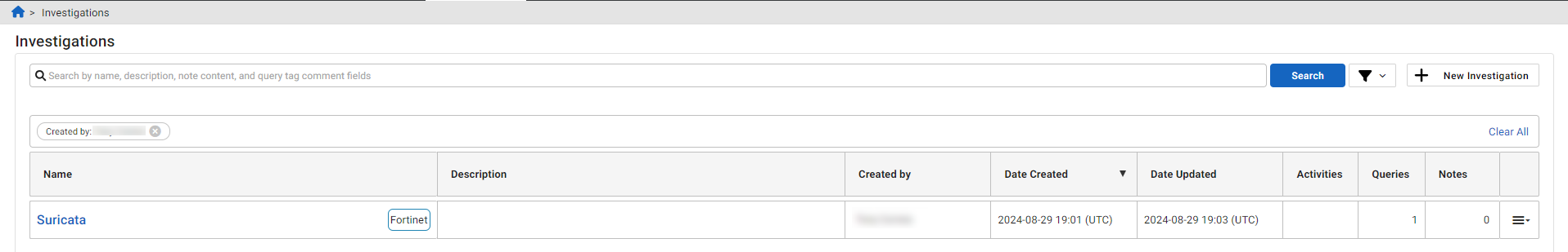 - Create a new investigation.