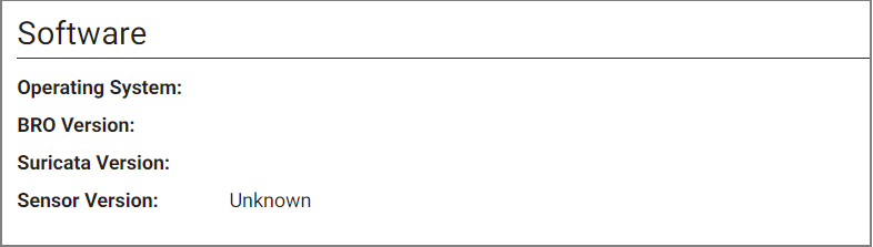The Software pane displays the Operating System, ZEEK Version, Suricata Version and Sensor Version.
