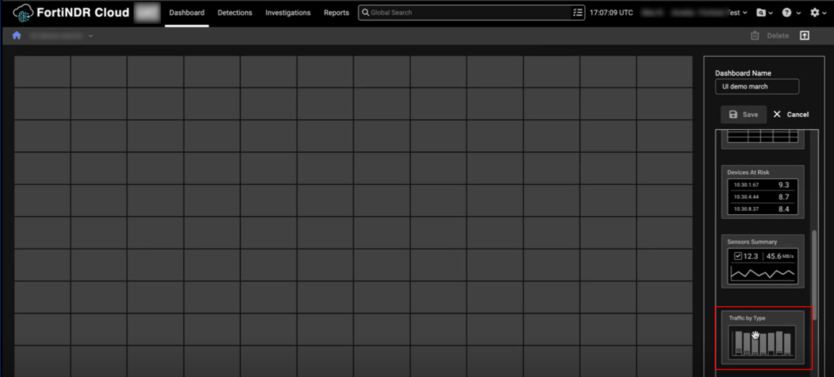 To add the widget, create a new dashboard, and select the Traffic by type widget in the menu.