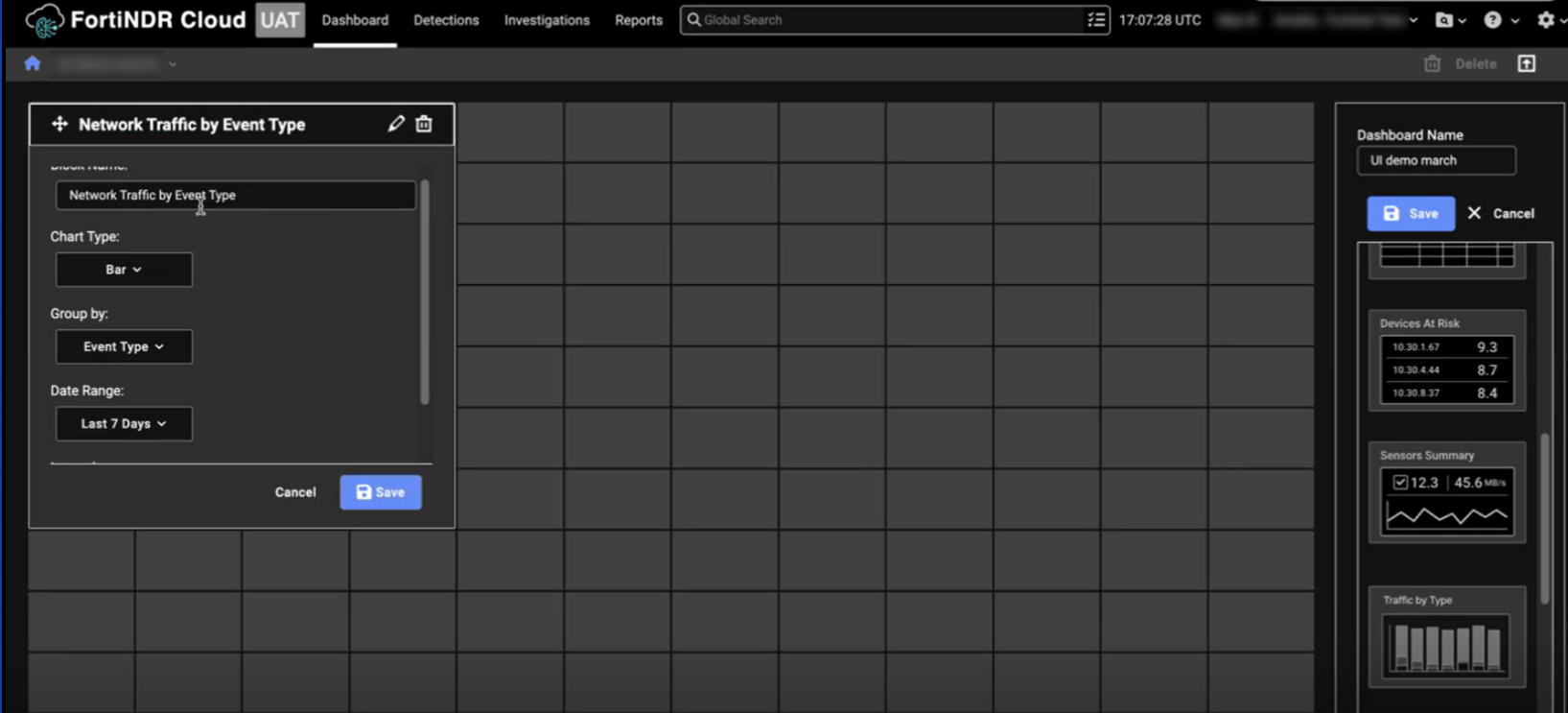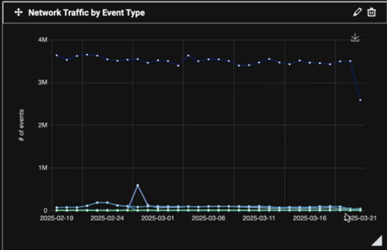 We have added a new Network traffic by Event Type widget to the custom dashboard menu. The data in the widget mirrors the Events tab in the Sensor telemetry page.
