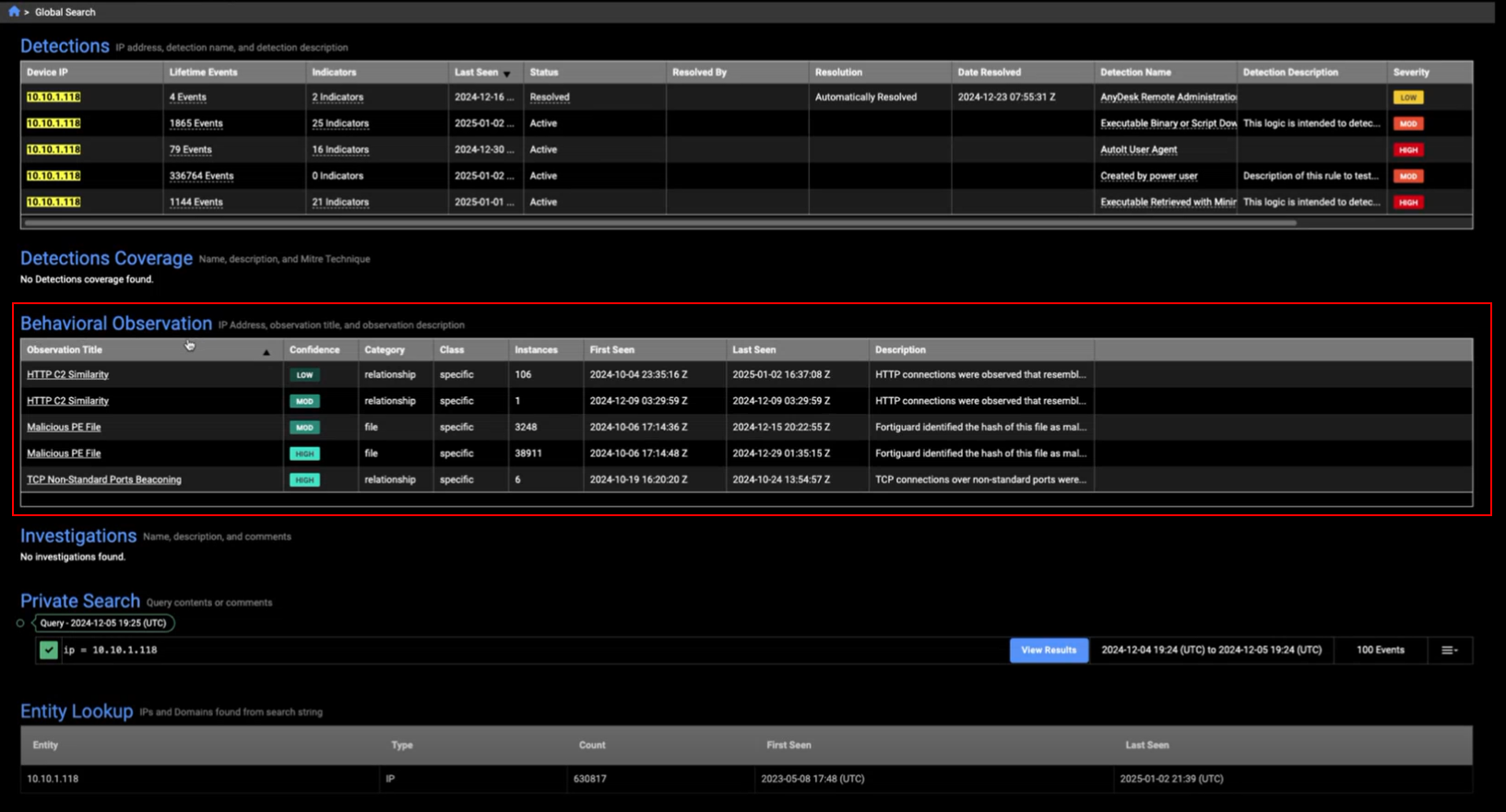 A timestamp is displayed for detections within the current year in the Entity Panel. Detections that are more than a year old, appear as More than a year ago.
