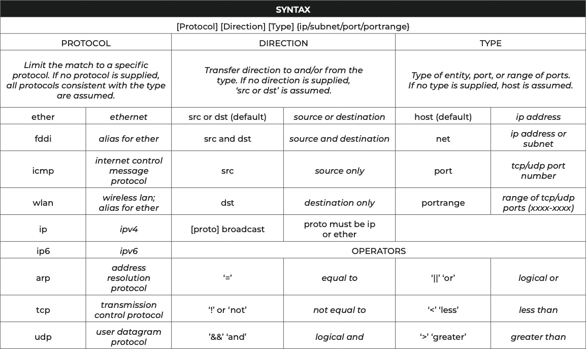 For in-depth information on Berkeley Packet Filters (BPFs), see The Linux Kernel Archives web site at https://www.kernel.org/. You can also download the BPF reference guide from here.