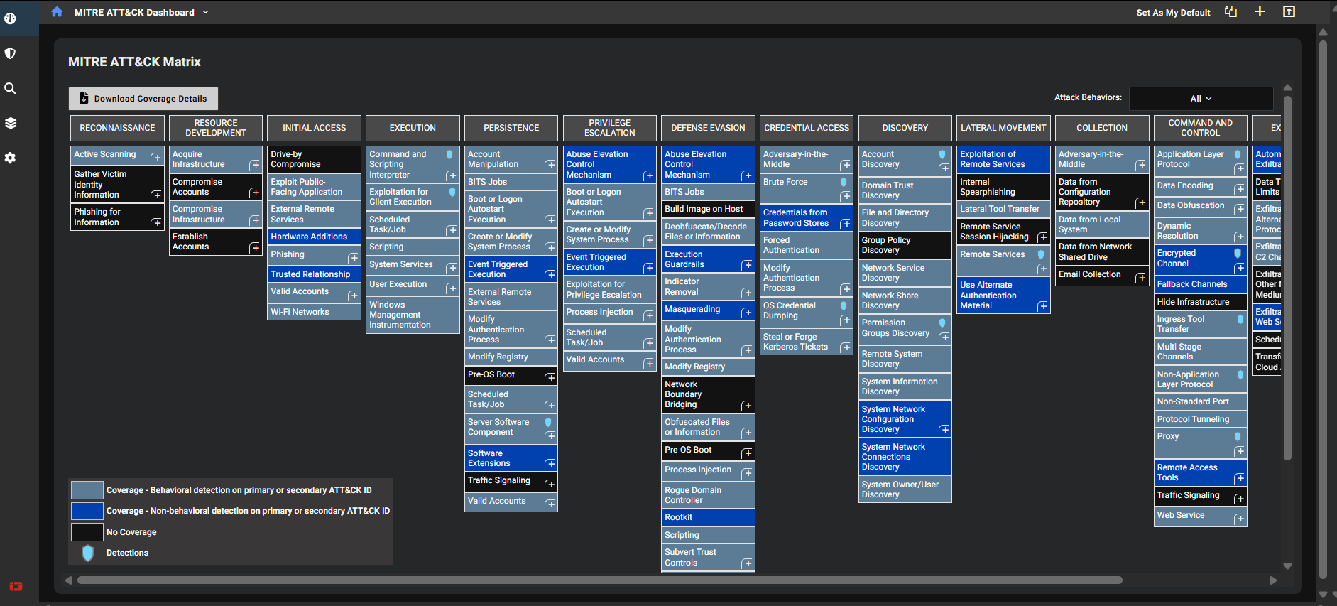 - Click the Download Coverage Details button to download the coverage details as a CSV file which contains the Date Updated, Name, Primary Attack ID, Secondary Attack ID and Description.