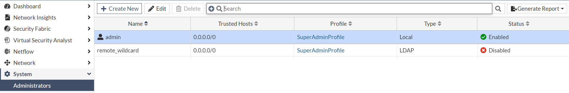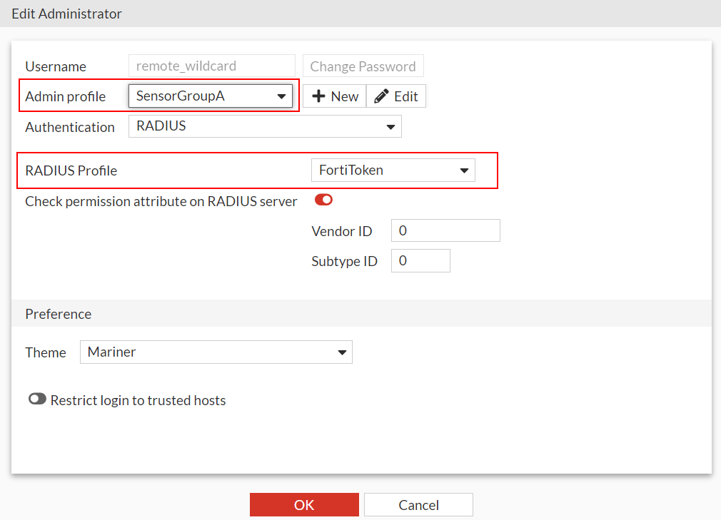 - Go to System > Administrator and double-click remote_wildcard. The Edit Administrator page opens.