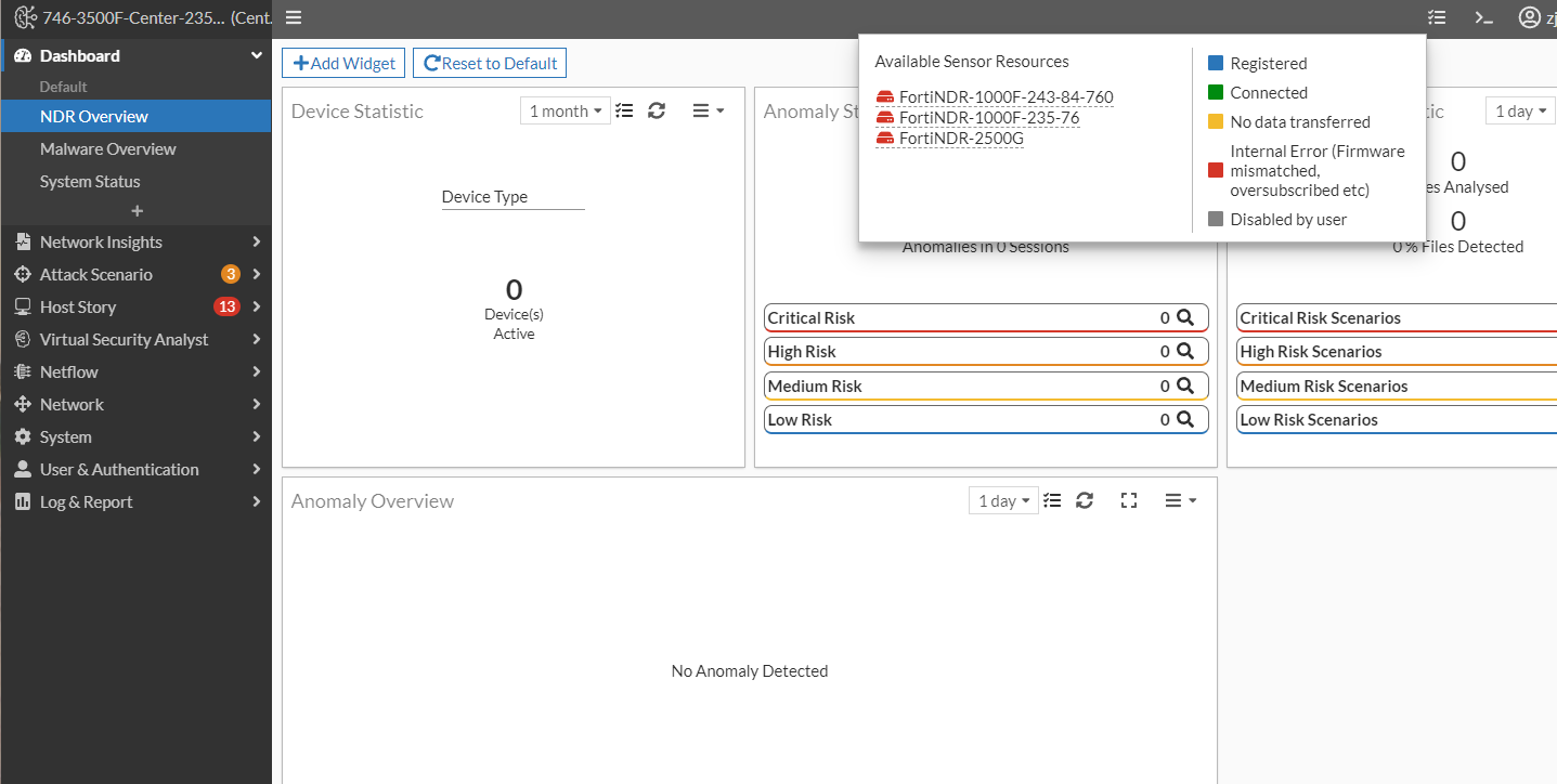 All users that access FortiNDR as a remote_wildcard administrator will see this dashboard view. |