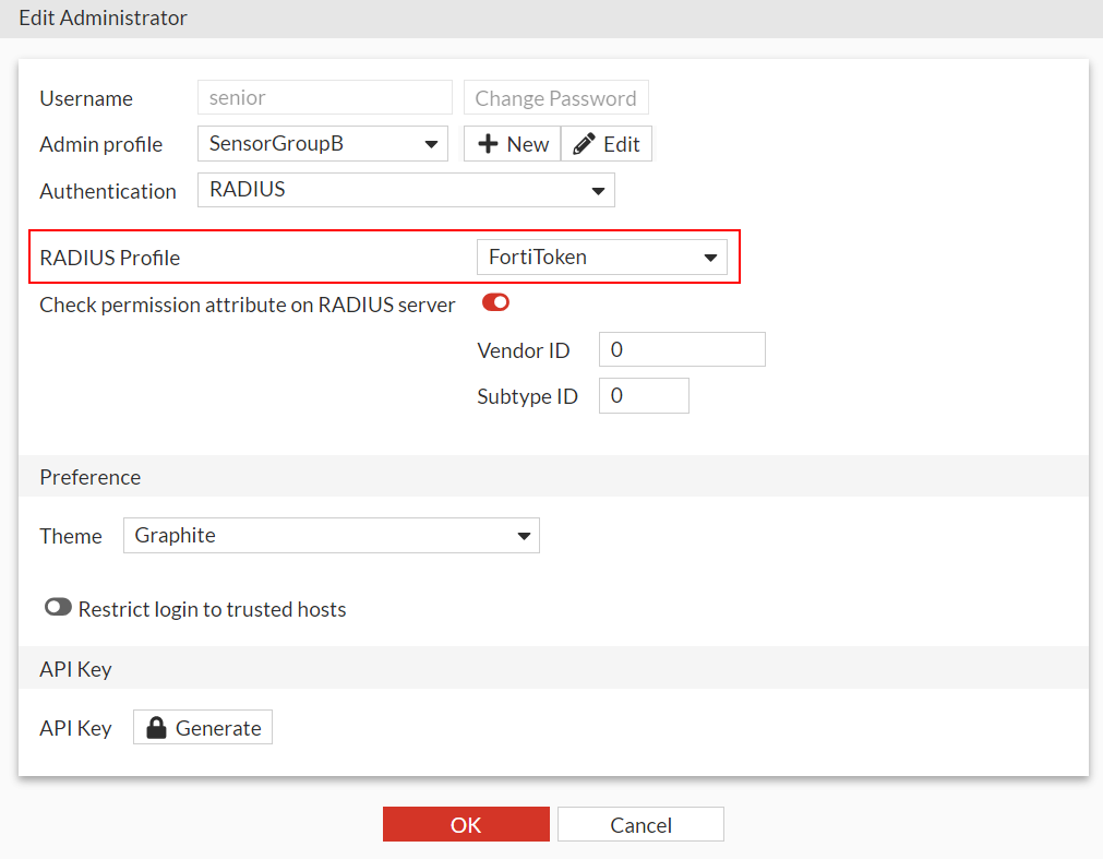 - In from the LDAP profile or RADIUS Profile dropdown, select the profile used by the remote_wildcard administrator.