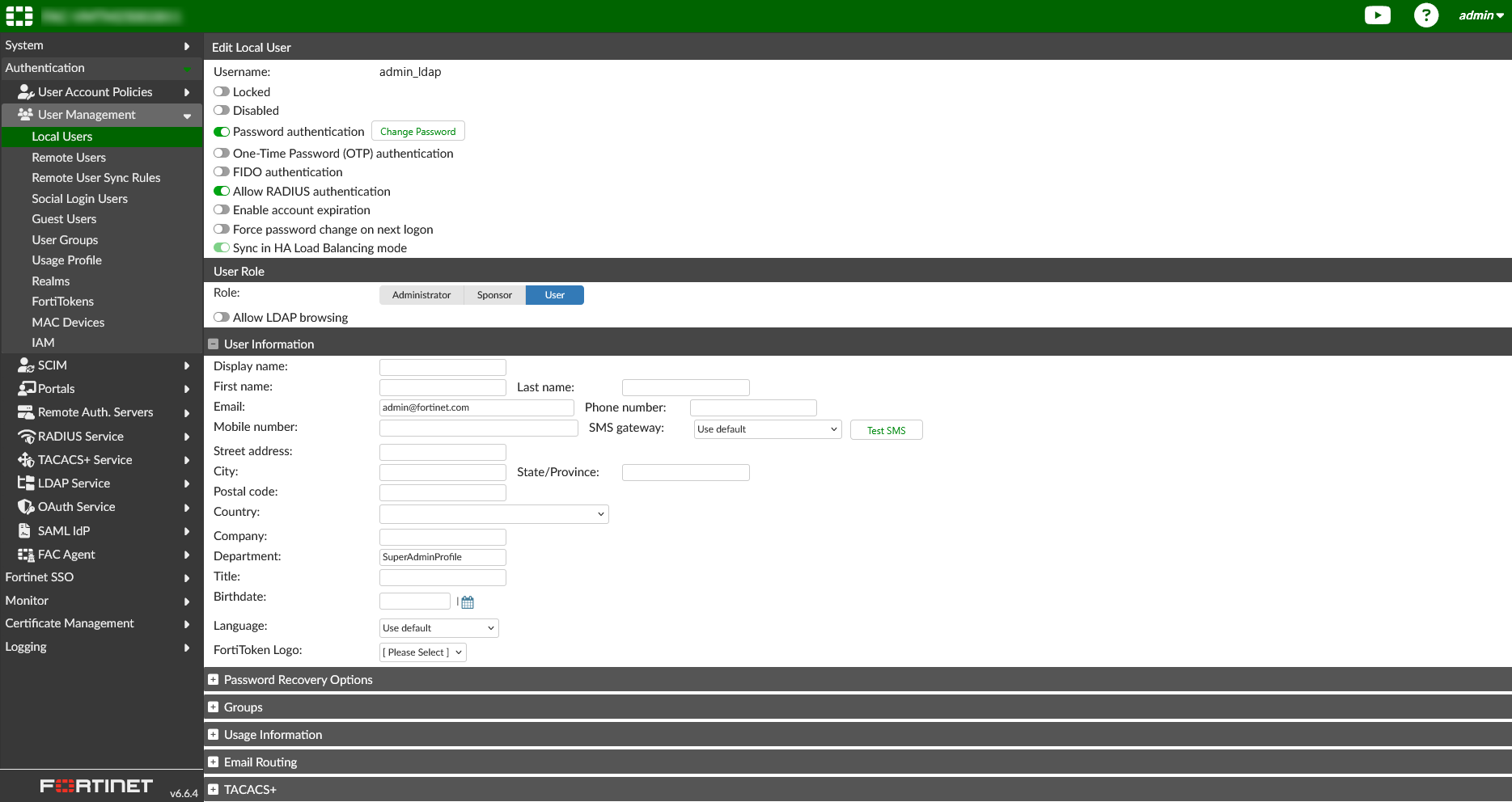 - In FortiNDR , go to User & Authentication > LDAP Server. Create or edit a new LDAP profile. See LDAP Servers.