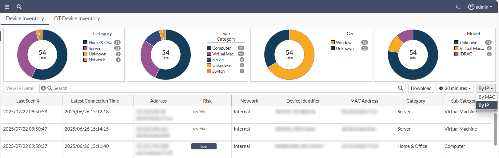 You can now use the view selector on the right corner of the Device Inventory table to view devices By Mac or By IP.
