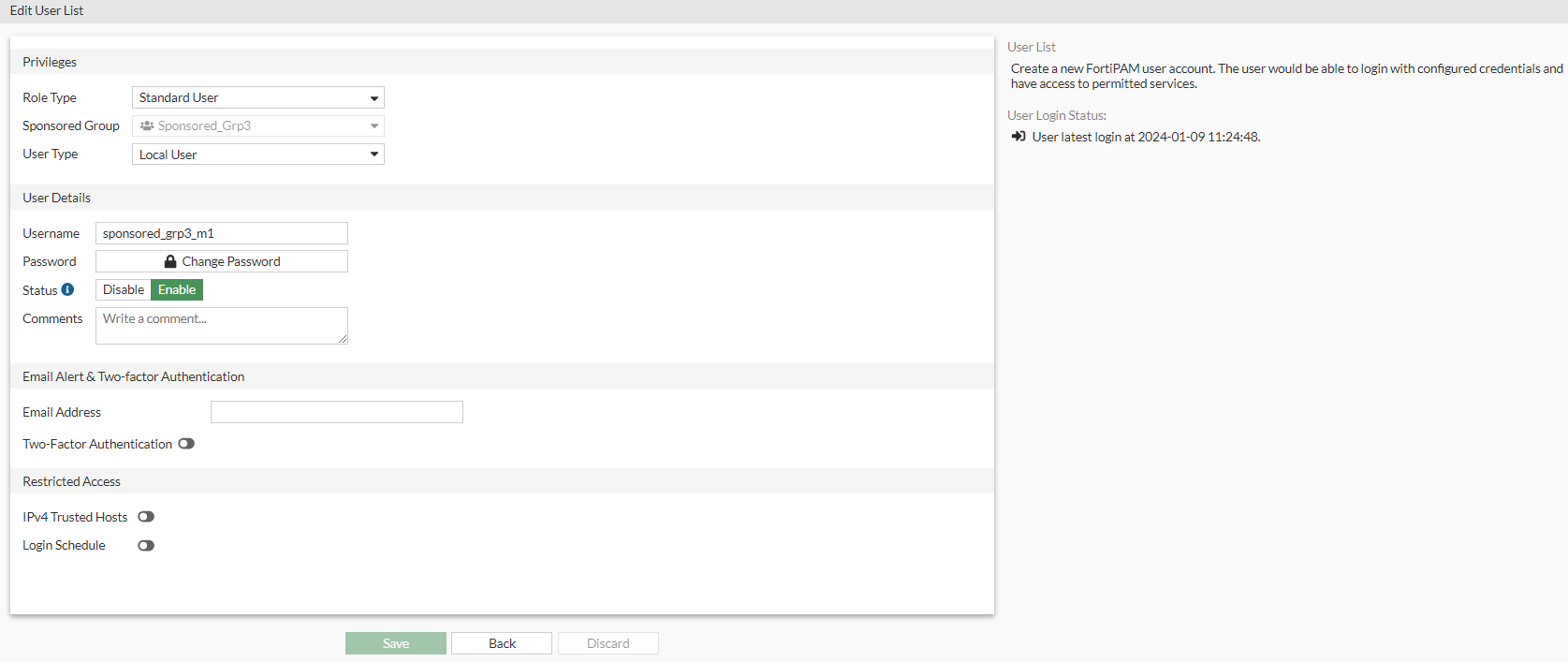 The sponsor admin created in Creating a sponsor admin logs in to the FortiPAM.