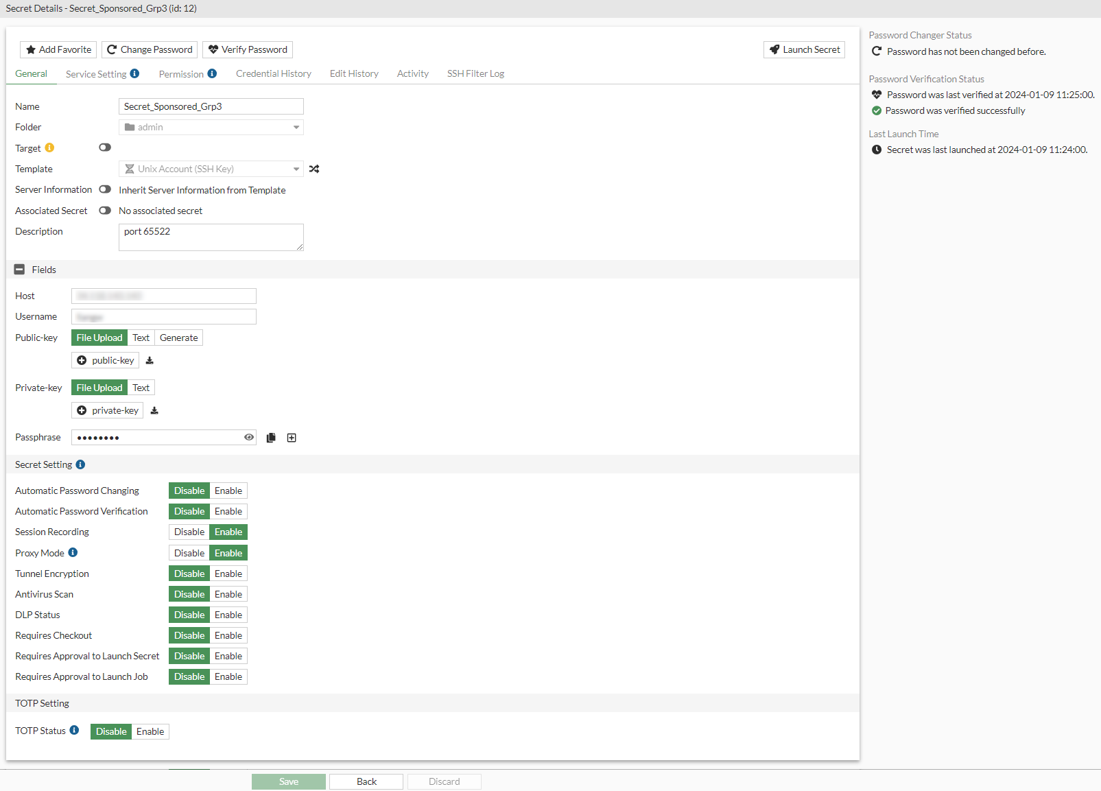 - In Private-key, select File Upload, and then select Upload to locate and upload private key file from the management computer.