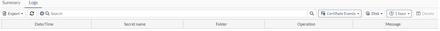 Selecting Certificate Events shows all the logs related to Certificate secret. This category of the secret log shows information related to the certificate status.