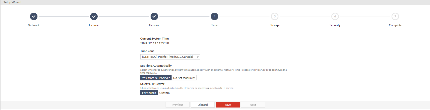 Choose between using a FortiGuard NTP server or specify a custom NTP server.