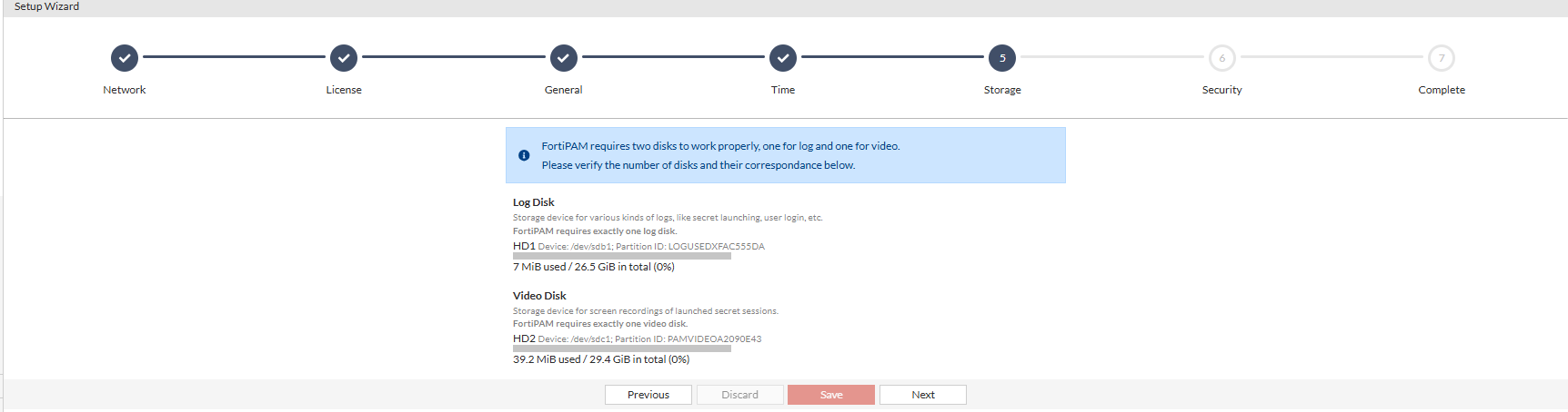 Note: FortiPAM requires exactly one video disk.