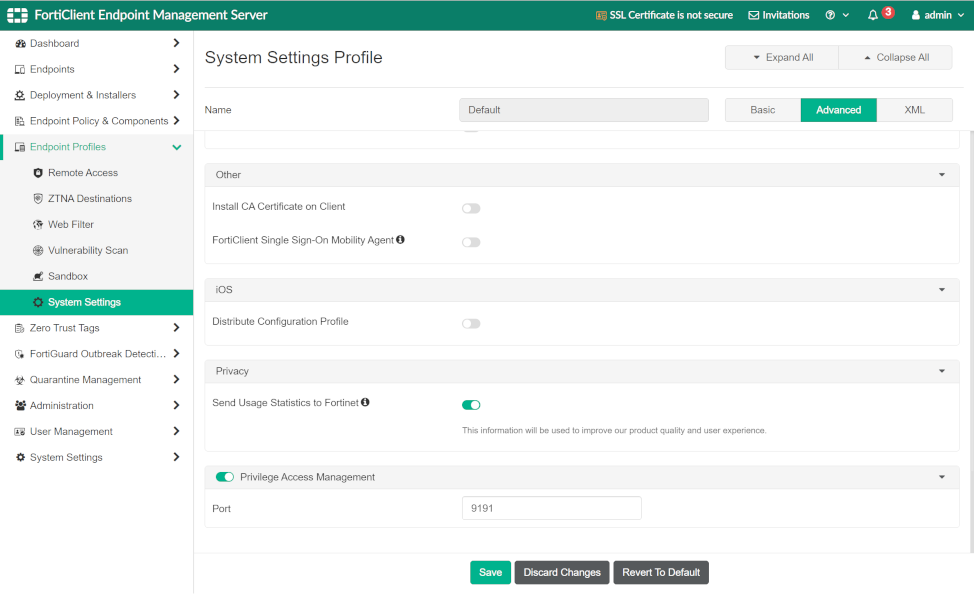 - Navigate to Endpoint Profiles > System Settings.